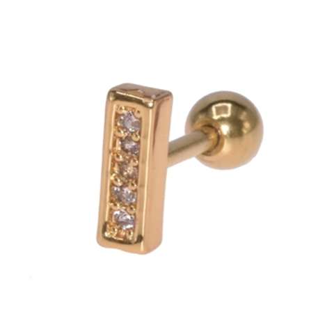 Helix/tragus piercing in gold surgical steel, bar with 5 white crystals