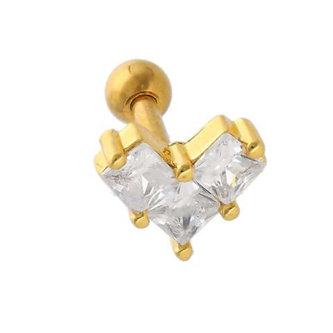 Helix/tragus piercing in gold surgical steel with 3 white "prong"setting crystals