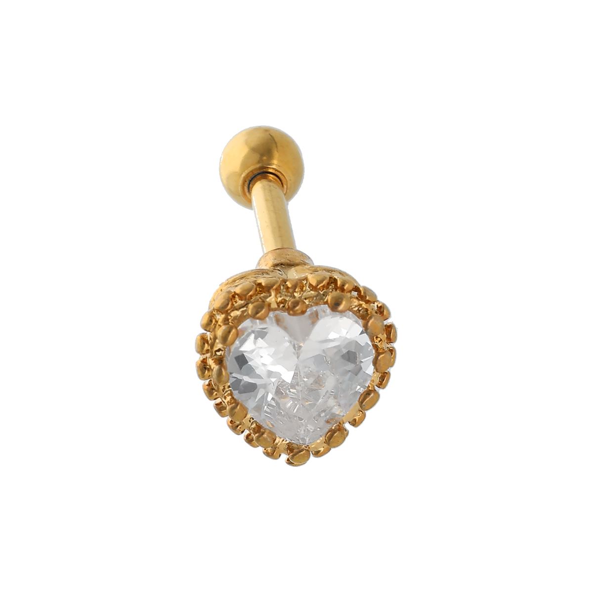 This ear piercing is made of high quality surgical steel 316L, which is provided with a colored PVD coating. The white crystals make this piece of jewelry a real eye-catcher. The material used (surgical steel 316L) is characterized by its special properties such as color fastness and material resistance. This ear piercing has a bar thickness of 1.2 mm and a bar length of 6 mm. The length of the heart is 6 mm.