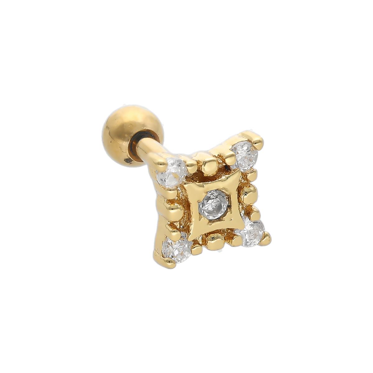 Helix/tragus piercing in gold surgical steel with a square and covered with white crystals