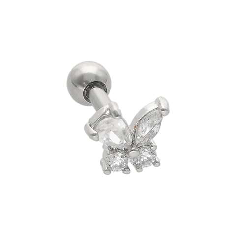 Helix/tragus piercing in surgical steel-motif covered with 4 white crystals