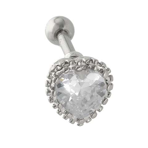 The heart, as well as the bar and the ball, are made of high quality Surgical Steel 316L. This material is characterized by its special properties such as color fastness and material resistance. This ear piercing has a bar thickness of 1.2 mm and a bar length of 6 mm. The diameter of the heart is 6 mm.