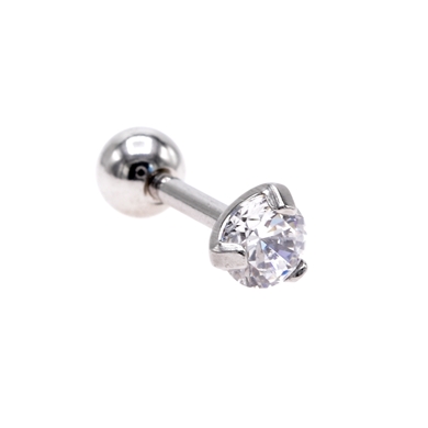 Helix/Tragus piercing in surgical steel with white "prong" setting crystal