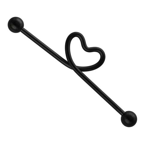 Industrial piercing in black surgical steel with an open heart