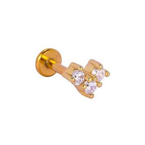 Labret/helix/tragus piercing in gold surgical steel with a V-pattern and white crystals