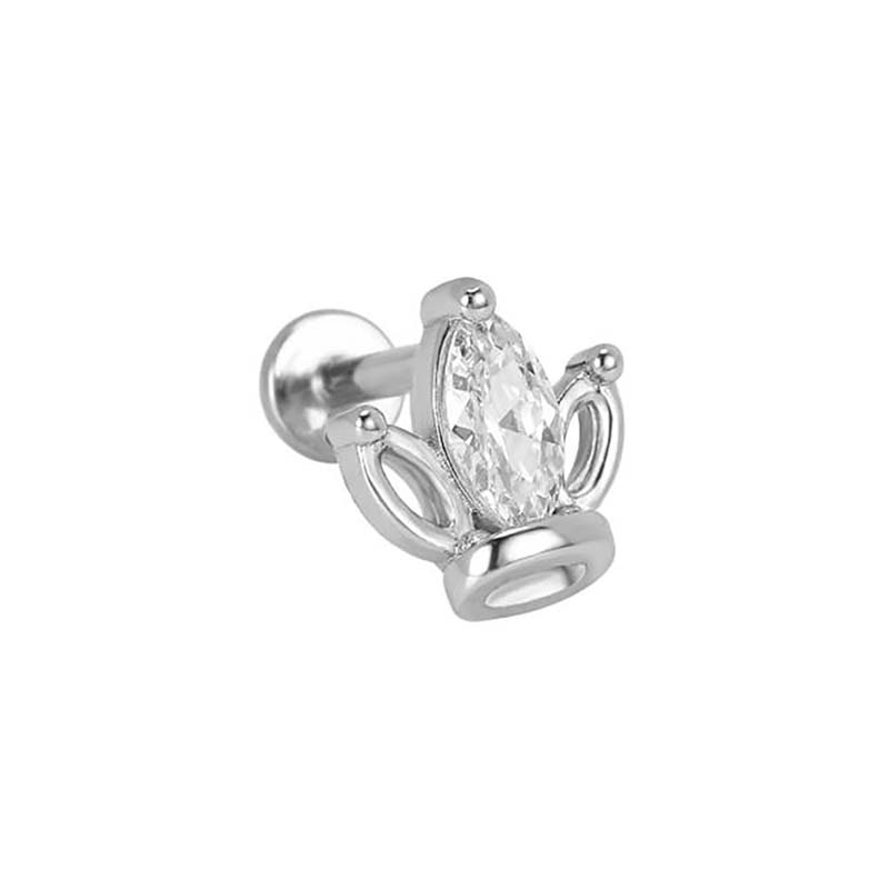 Labret/helix/tragus piercing in surgical steel-crown covered with 1 white crystal