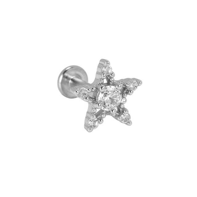 Labret/helix/tragus piercing in surgical steel-star covered with white crystals