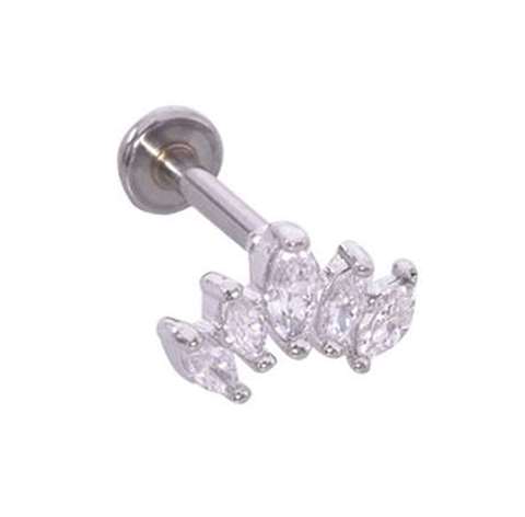 Labret/helix/tragus piercing in surgical steel with a crown and set with 5 white crystals