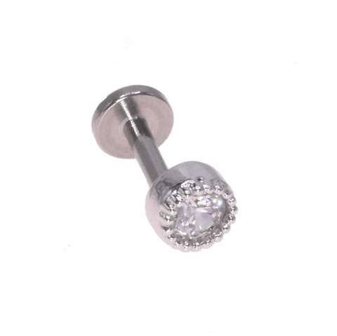 Labret/helix/tragus piercing in surgical steel with a flat big, white crystal