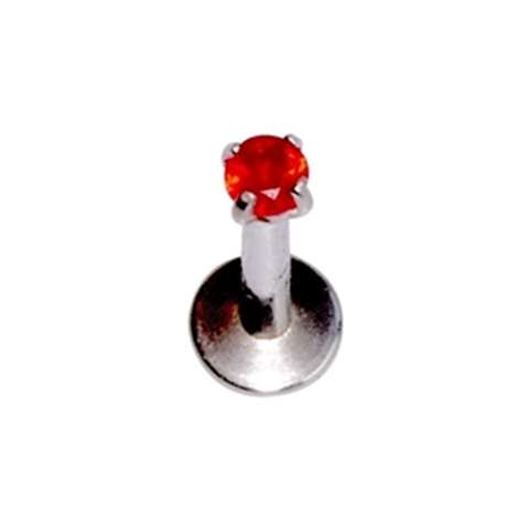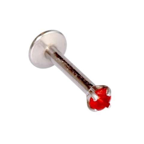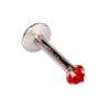Labret in chirurgical steel, "prong" setting, round red crystal