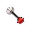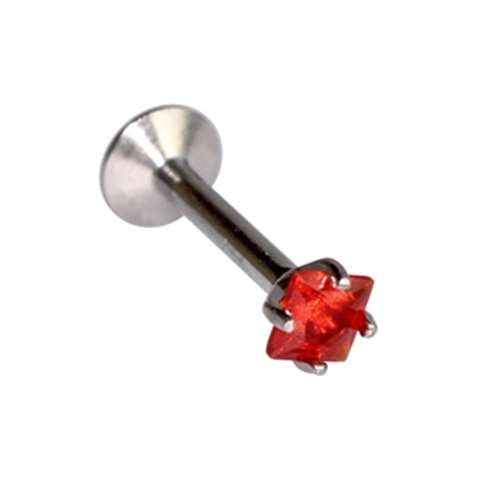 Labret in chirurgical steel, "prong" setting, square red crystal