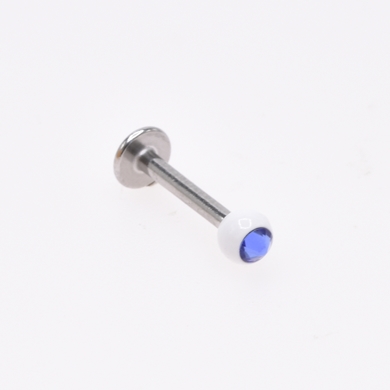Labret in chirurgical steel with white supernova ball and crystal dark blue