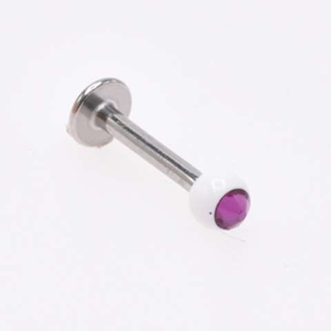 Labret in chirurgical steel with white supernova ball and crystal fuchsia