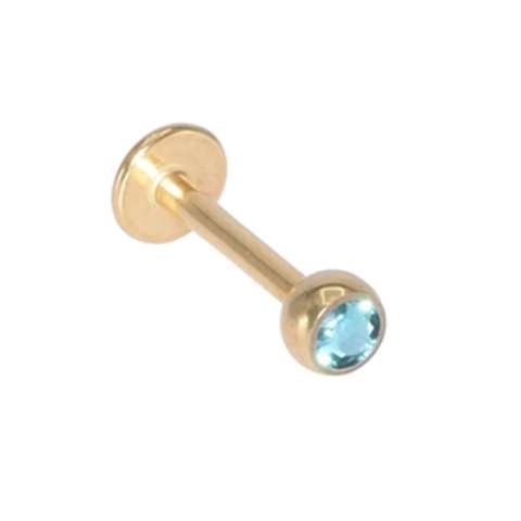 Labret in gold chirurgical steel with a flat, big turquoise crystal