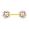 Nipple piercing in gold surgical steel-round motif covered with white crystals