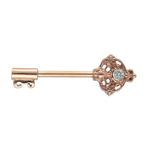 Nipple piercing in rose gold chirurgical steel, key with a small white crystal