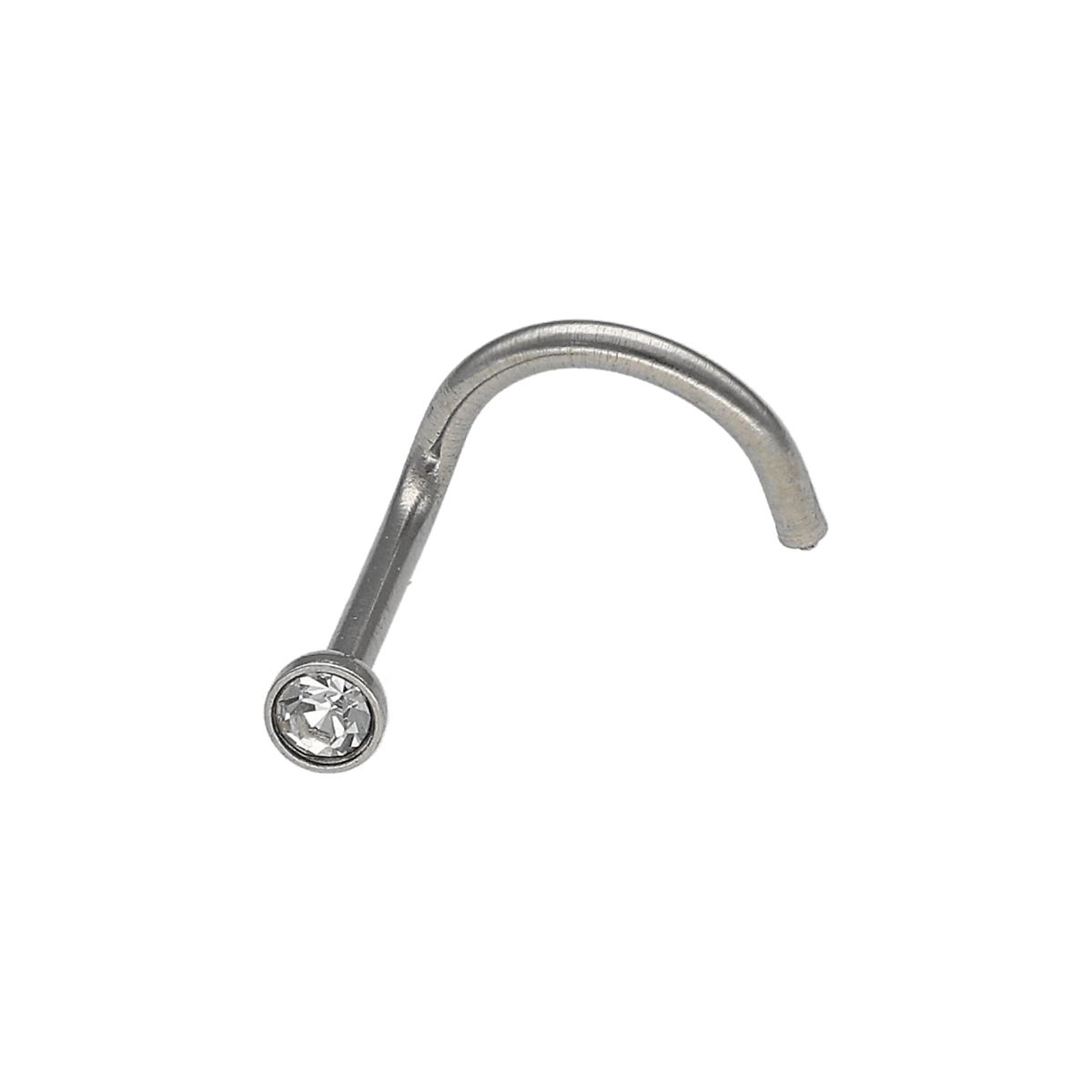 Jewelled nose screw stud in chirurgical steel with curved stem for a better and secure fit.