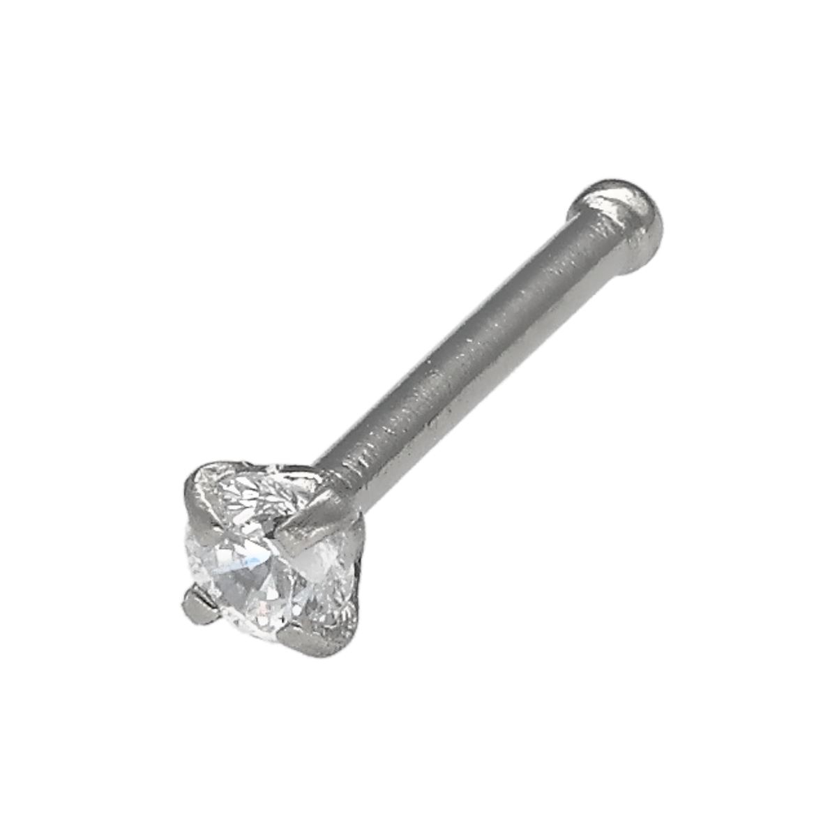 Nose stud in chirurgical steel straight with a white "prong" setting crystal