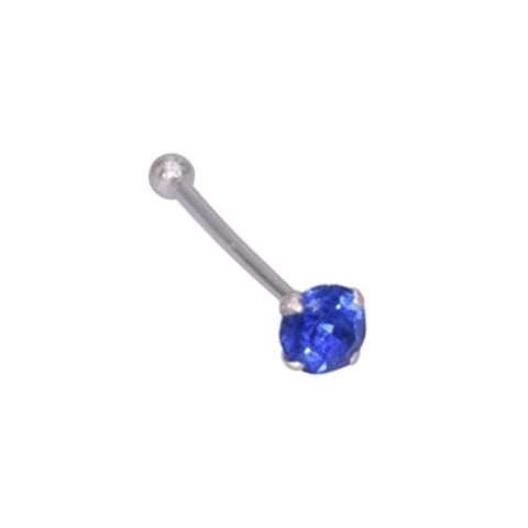 Nose stud in silver 925%, straight with a dark blue "prong" setting crystal