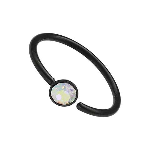 This pliable O-ring is made of high-quality surgical steel 316L and provided with a durable black PVD coating. The article is easy to bend open and easy to use. The material used offers good resistance and compatibility with the skin. This beautiful ring with fixed crystal is ideal for a nose piercing, but also for a helix piercing. The jewel is available in thickness of 0.8 mm and diameters 8 mm and 10 mm. Diameter of the crystal is 3 mm.