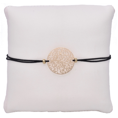 Ornament bracelet with a steel gold colored coin, tree