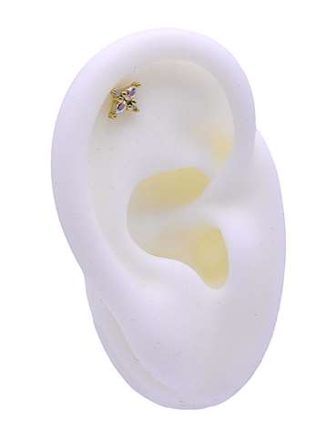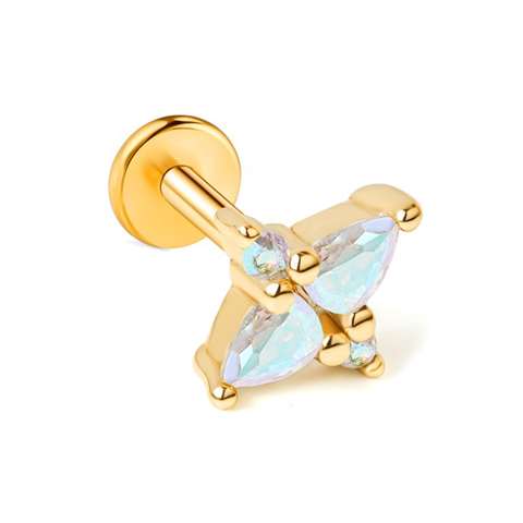Labret/helix/tragus piercing in gold surgical steel with A.B. color crystals