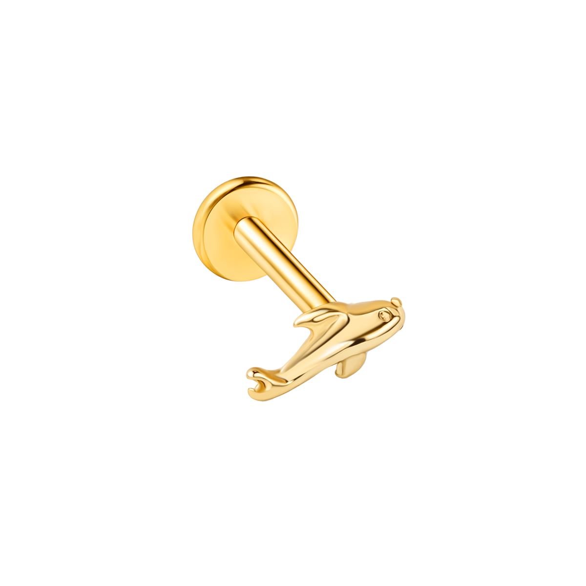Labret/helix/tragus piercing in gold surgical steel with a fish