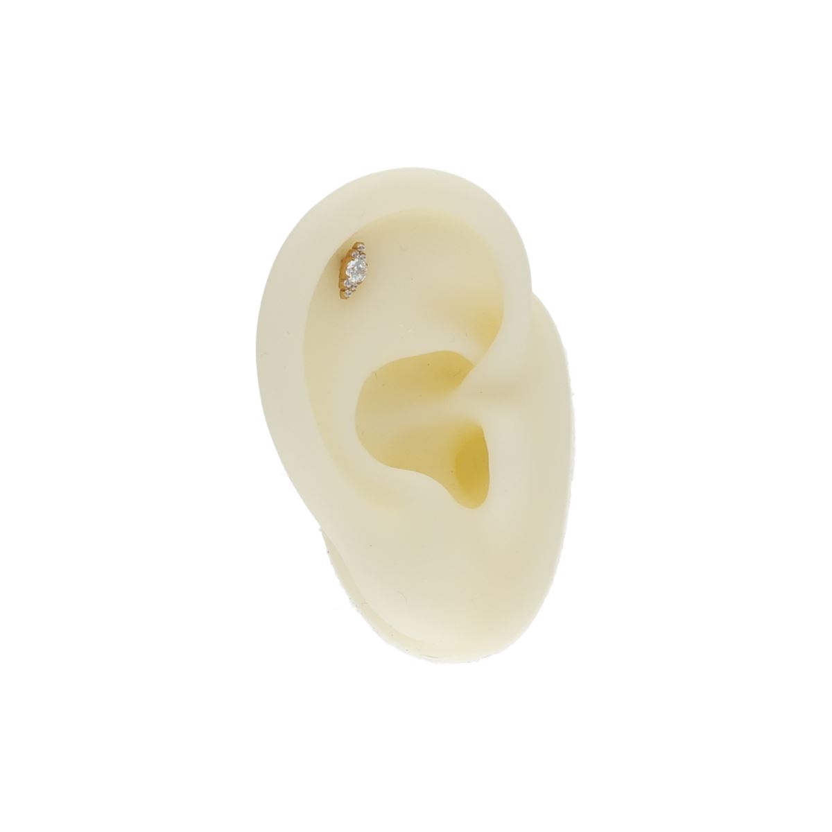 Labret/helix/tragus piercing in gold-coloured titanium F136 design with 7 white crystals