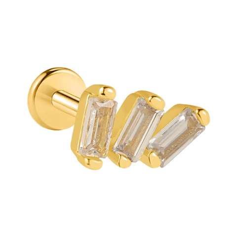 Labret/helix/tragus piercing in gold surgical steel crown with 3 white crystals