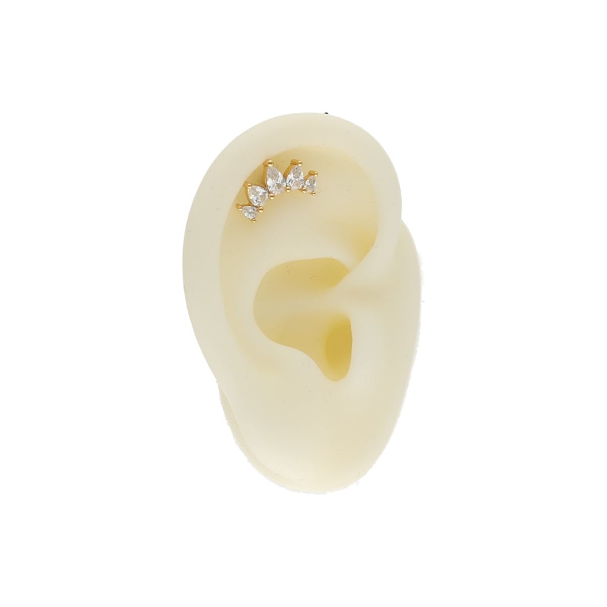 Labret/helix/tragus piercing in gold surgical steel crown with 5 white crystals