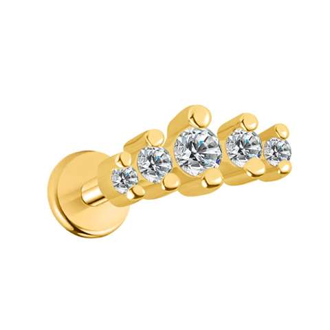 Labret/helix/tragus piercing in gold surgical steel crown with 5 white crystals