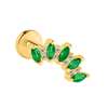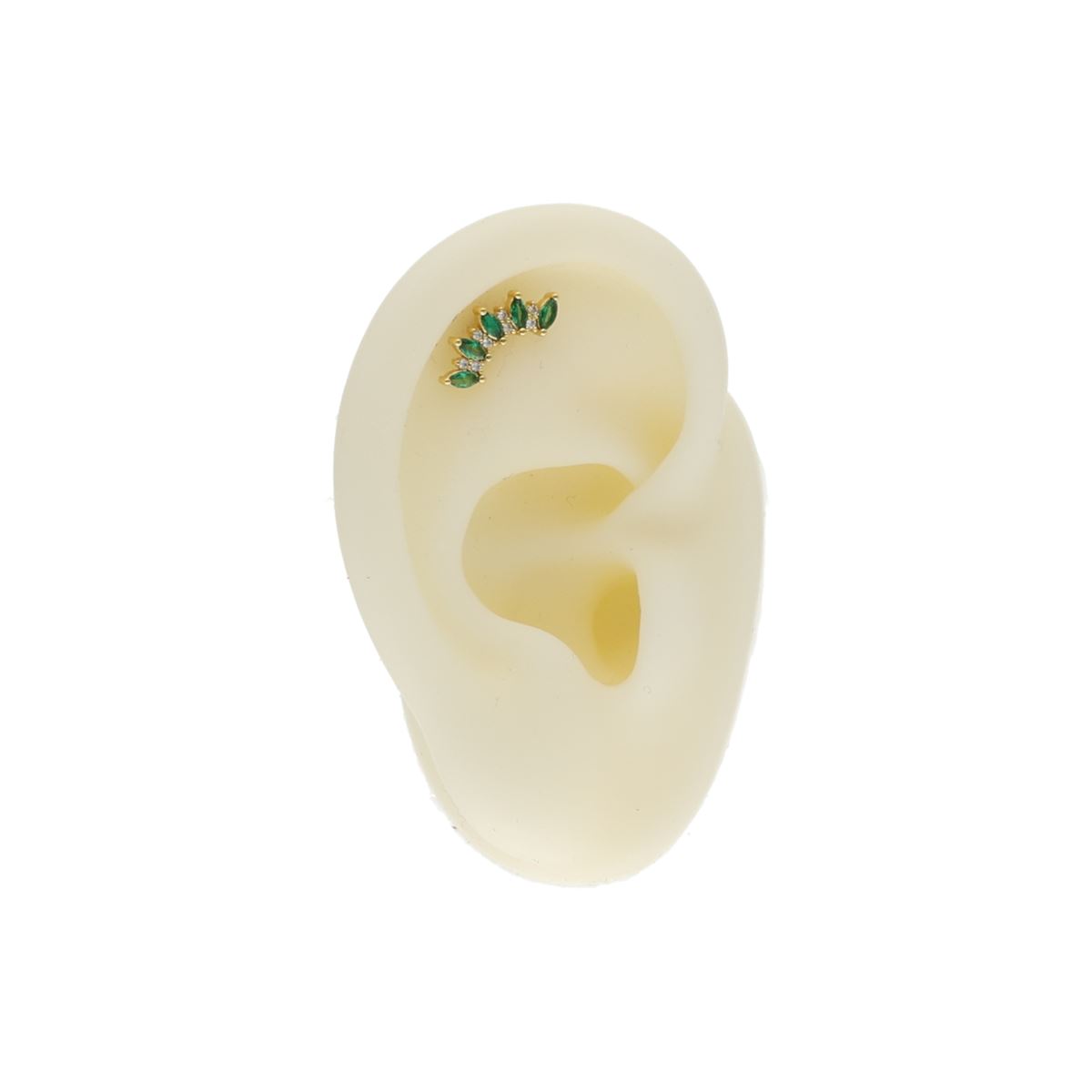 Labret/helix/tragus piercing in gold surgical steel loop with green and white crystals