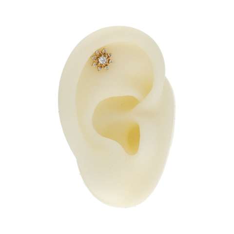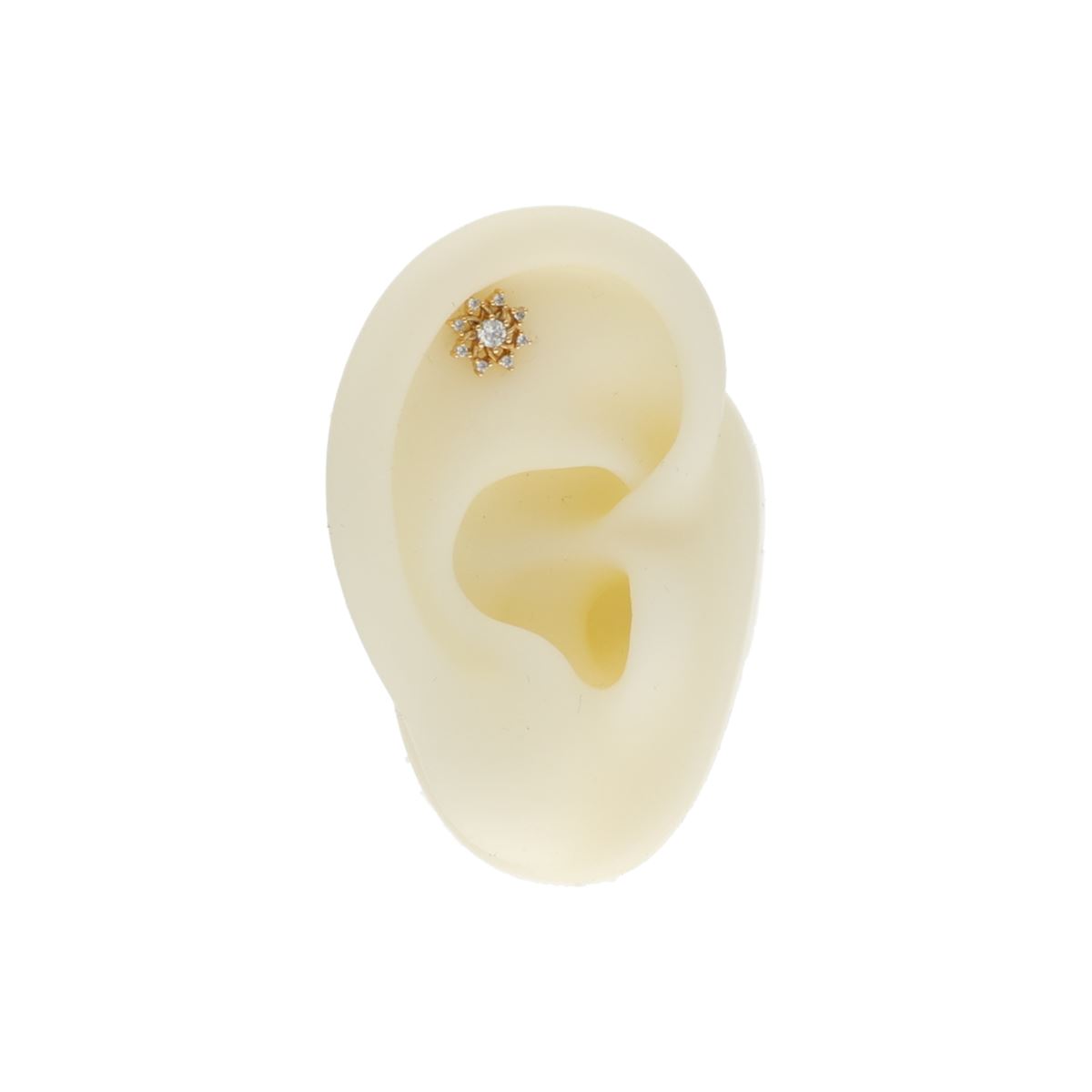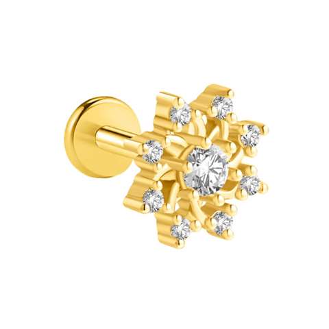 Labret/helix/tragus piercing in gold surgical steel star covered with white crystals