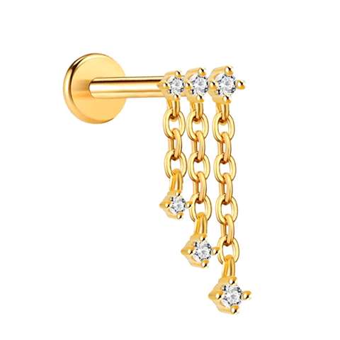 Labret/helix/tragus piercing in gold surgical steel with 3 chains