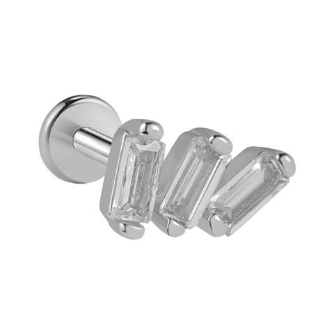Labret/helix/tragus piercing in surgical steel crown with 3 white crystals