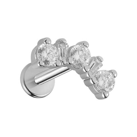 Labret/helix/tragus piercing in surgical steel loop with 5 white crystals