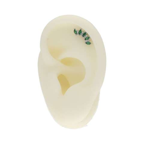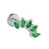 Labret/helix/tragus piercing in surgical steel loop with green and white crystals