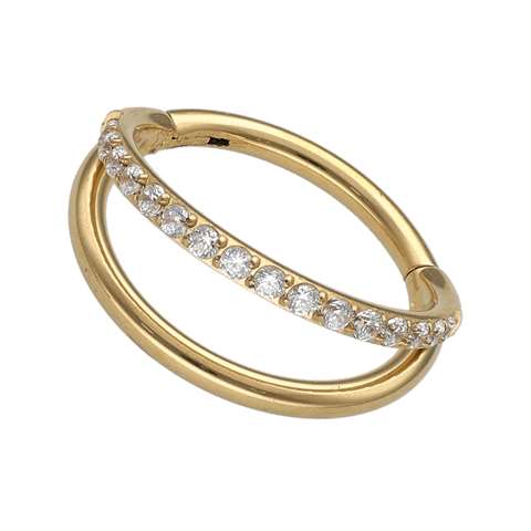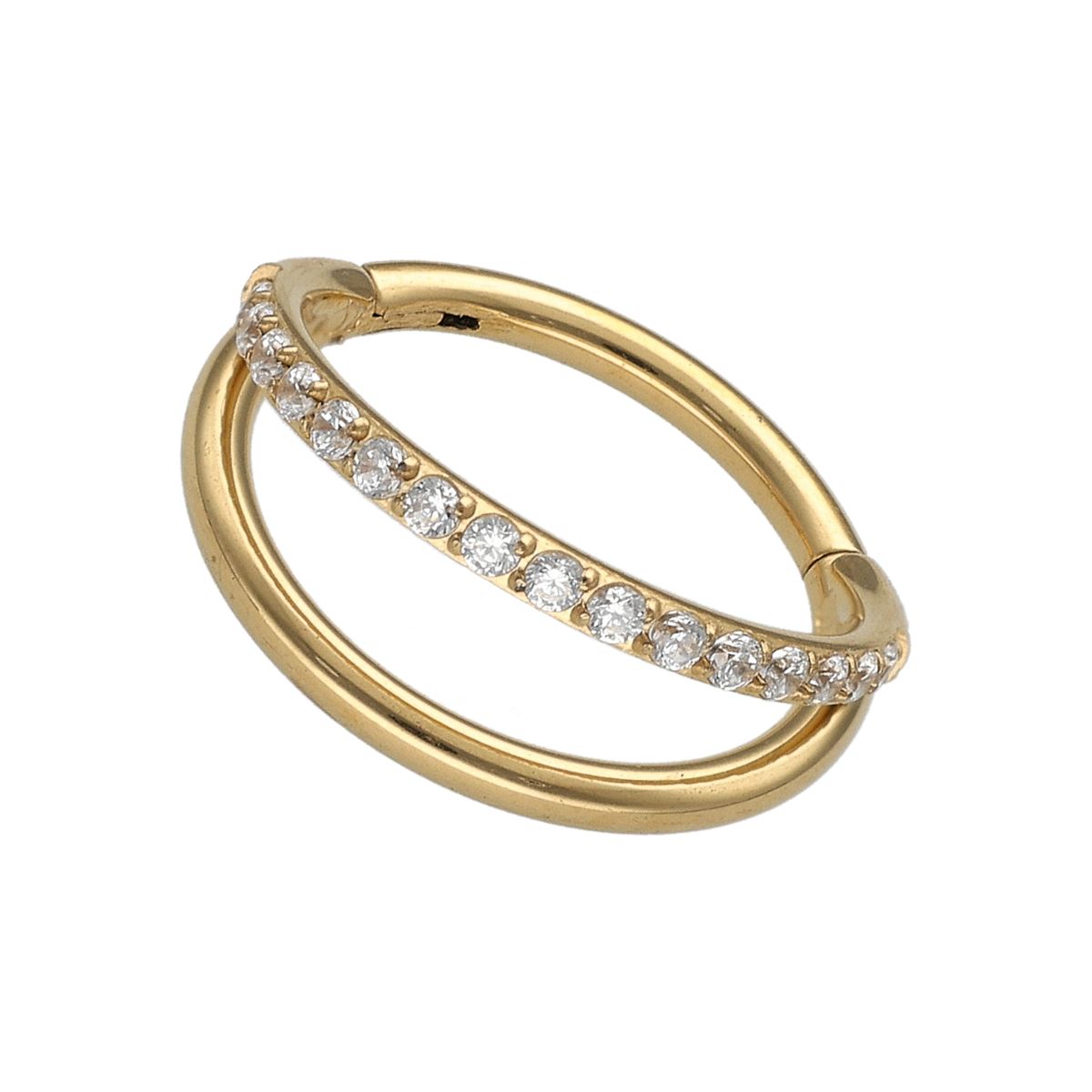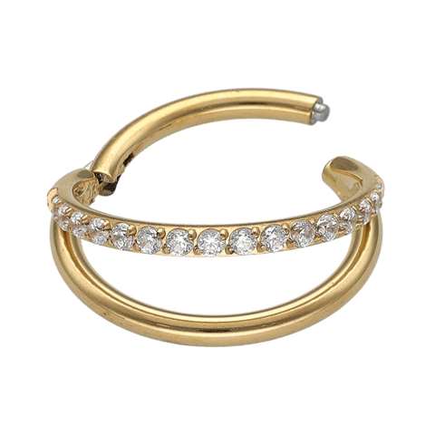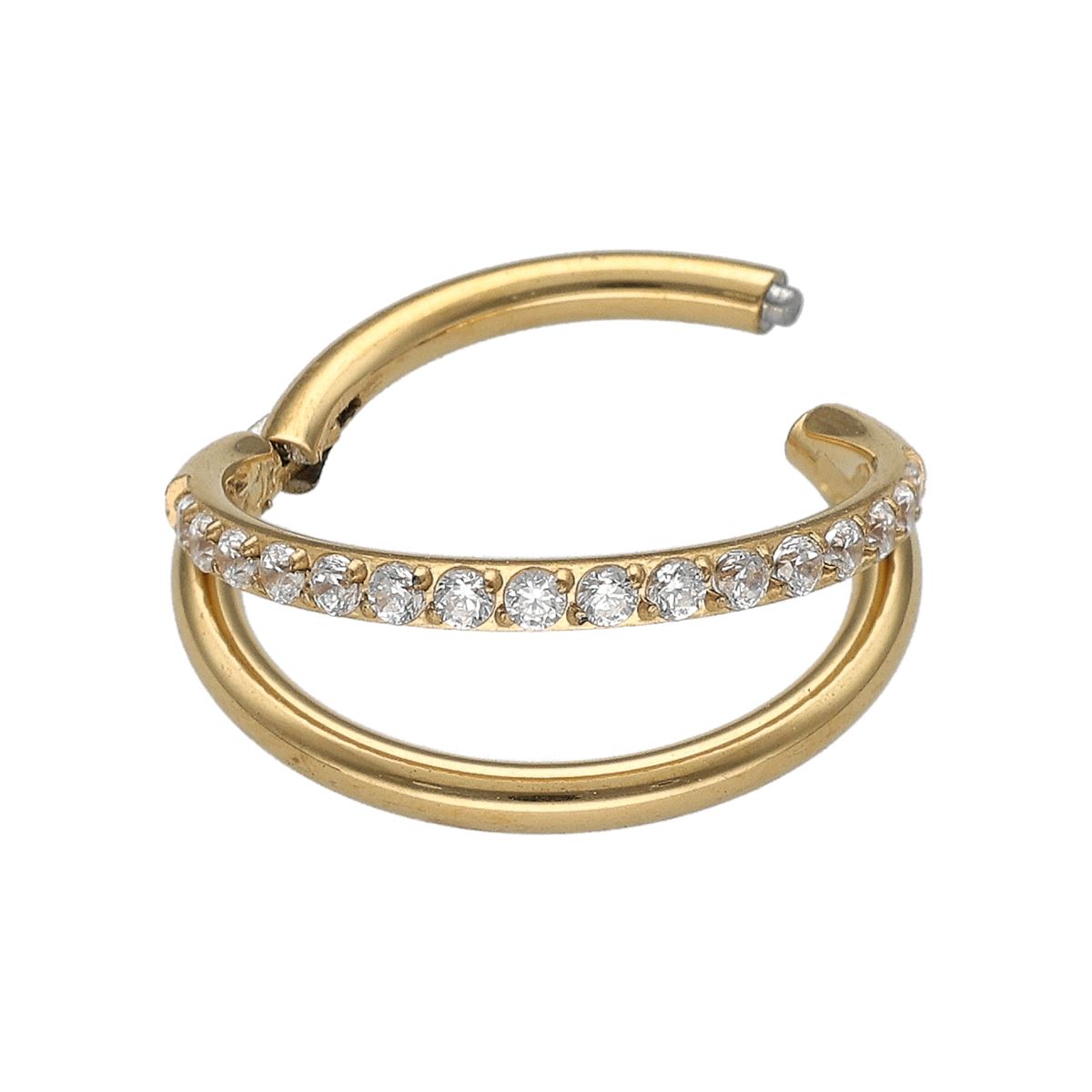 Segment click ring in gold surgical steel-double row with 1 row of white crystals