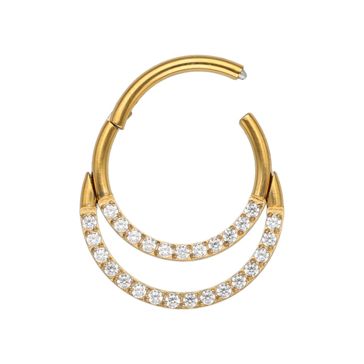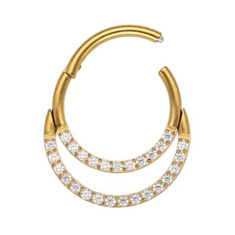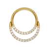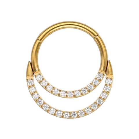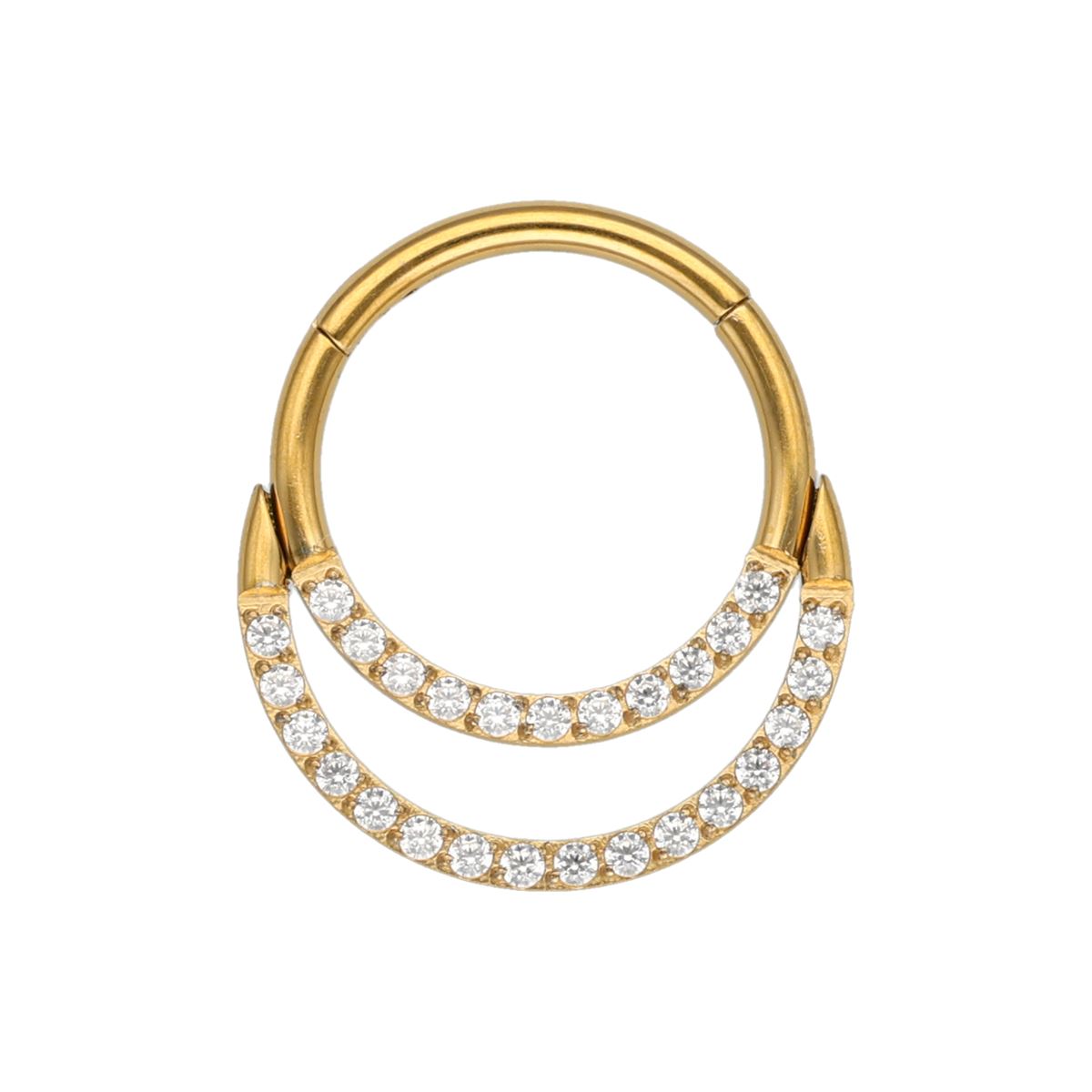 Segment click ring in gold surgical steel with a double row of white crystals