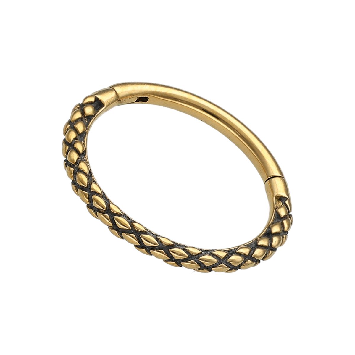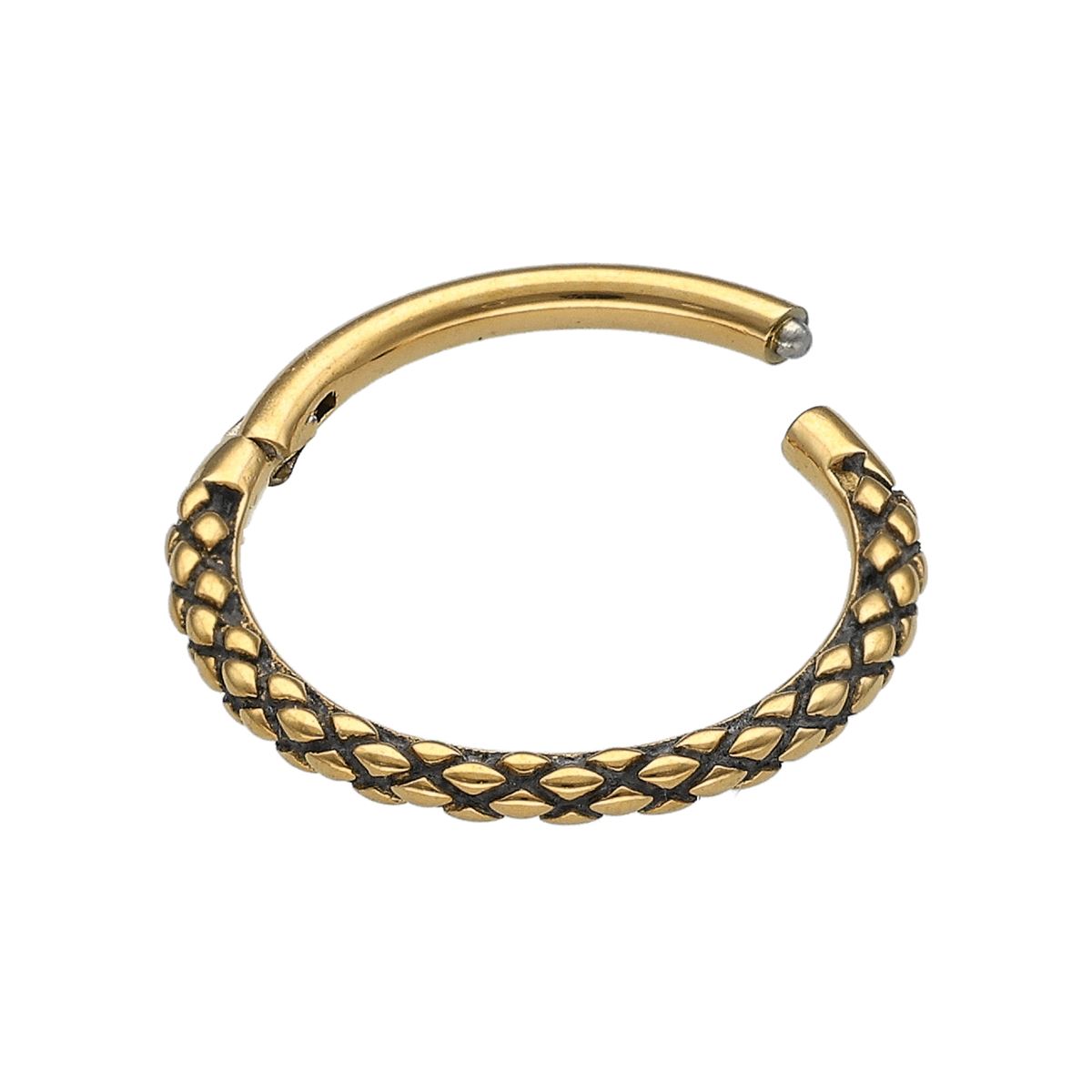 Segment click ring in gold surgical steel with a fine twisted motif