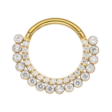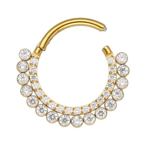 Segment click ring in gold surgical steel with hinge and double row white crystals
