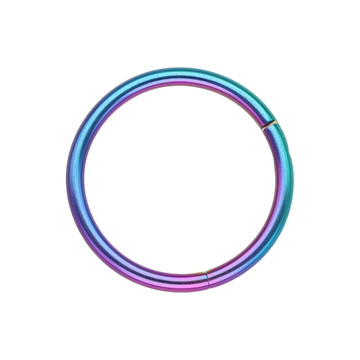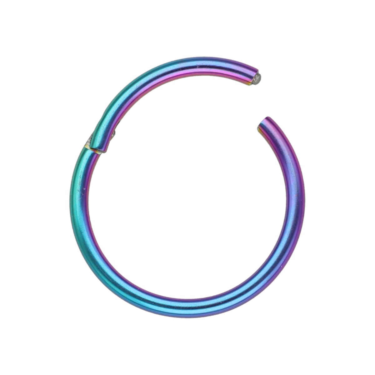 This special piercing is made of high quality Surgical Steel 316L and has a colored PVD coating. This gives the article good skin compatibility. The segment is attached to a hinge, making it easy to open and close. The clicker piercings are suitable for use in the septum and many other body areas (such as the ear). The segment ring has a bar thickness of 1.2 mm and is available in diameters of 8 mm and 10 mm. Measured from the inner sides.