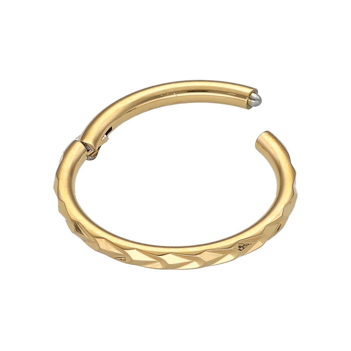 Segment click ring in surgical steel-gold colored with an engraved motif on the side