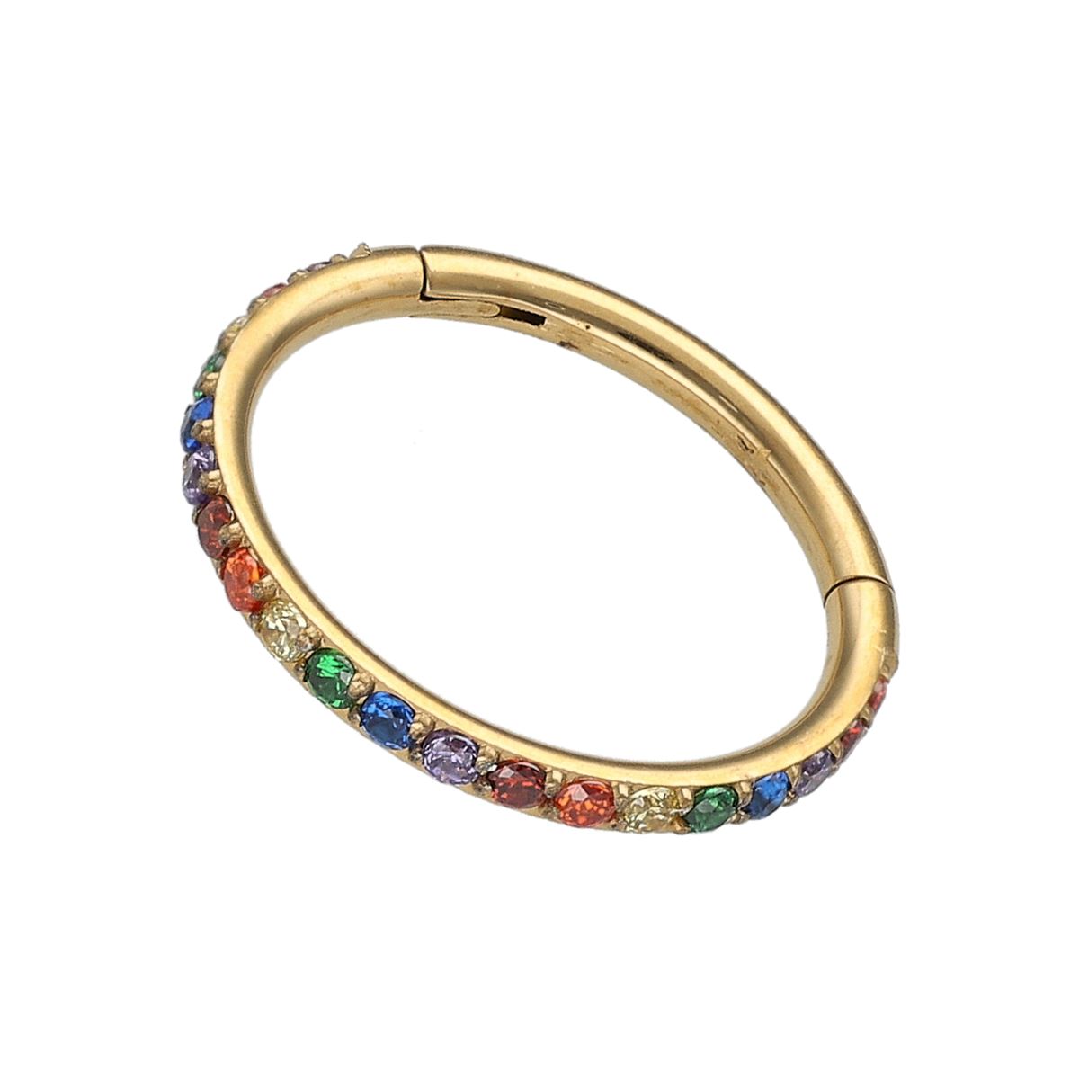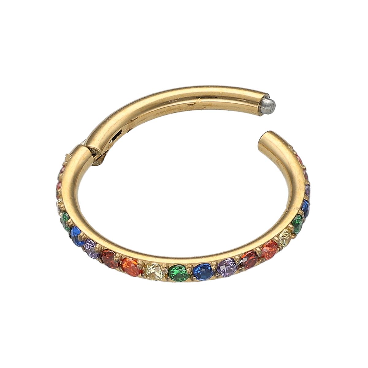 Segment click ring in surgical steel with hinge and crystals in different colors