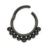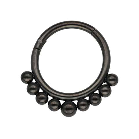 This special piercing is made of high quality surgical Steel 316L and has a colored PVD coating. This gives the article good skin compatibility. The segment is attached to a hinge, making it easy to open the and close. The clicker piercings are suitable for use in the septum and many other body areas (such as the ear). The segment ring has a bar thickness of 1.2 mm and is available in diameters of 8 mm and 10 mm.