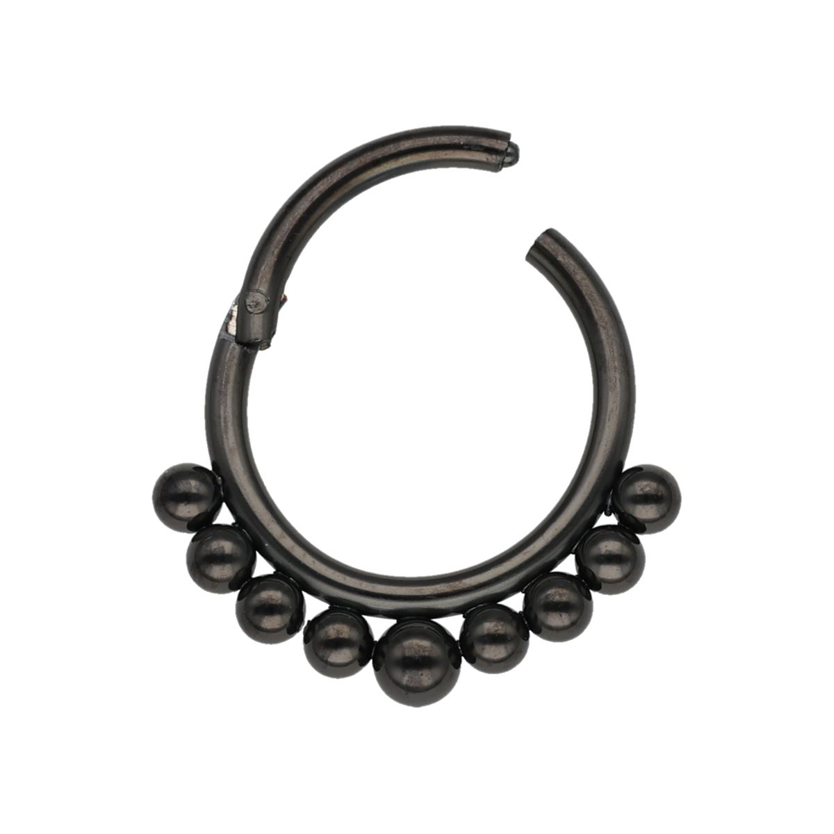 Segment ring in black surgical steel with small balls