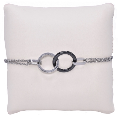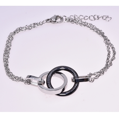 Steel bracelet with 2 open rings, one in steel and the dark gray in tungsten. Diameter of the rings is 17 mm.
