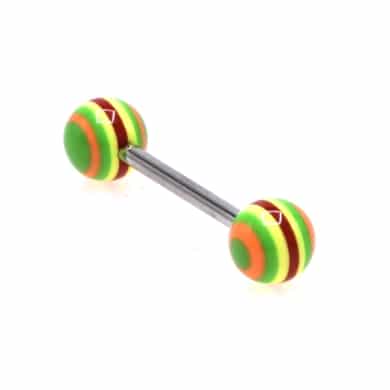 Tongue piercing in acrylic, green-yellow-orange-red
