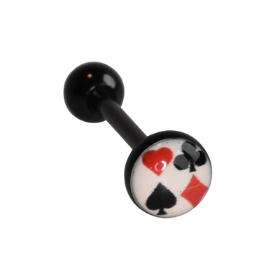 Tongue piercing in black chirurgical steel, cards