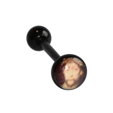 Tongue piercing in black chirurgical steel, jesus
